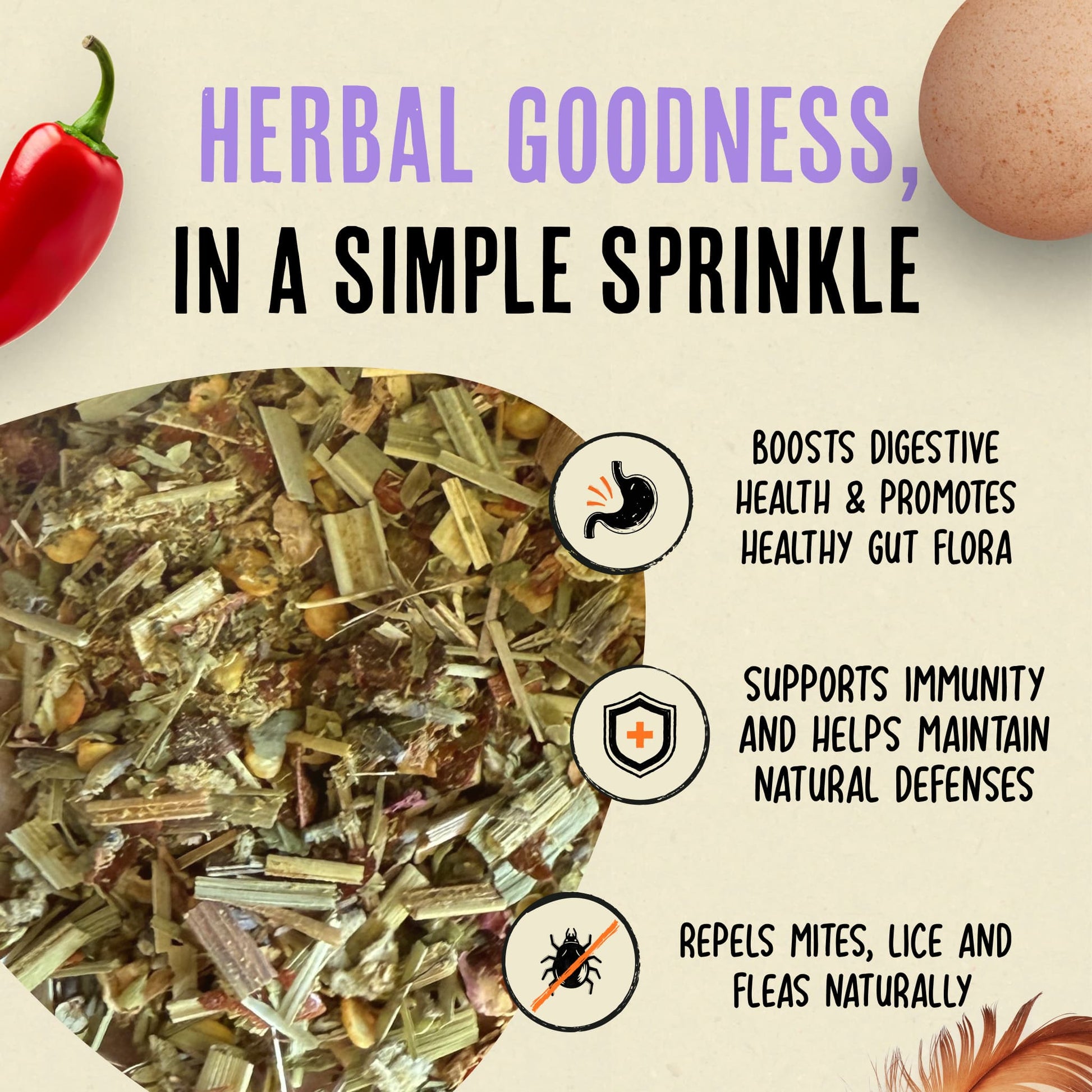 🐜 Repels mites, lice & fleas naturally with our chili-powered herb blend