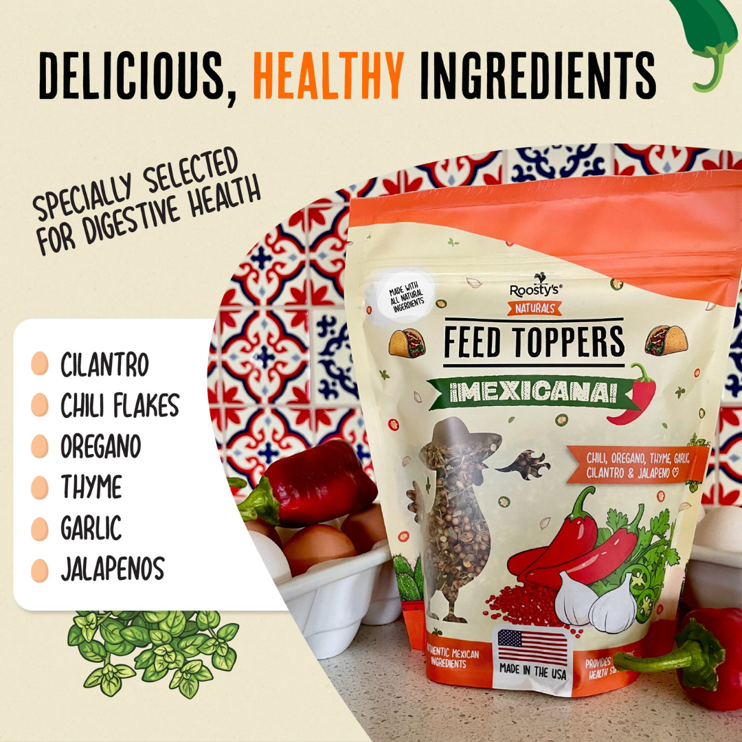 Boosts Digestive Health: Contains our special Roosty's chili blend which aids in your flock's digestive health while keeping unwanted guests at bay. Chickens love chili, other visitors to your coop really don't!